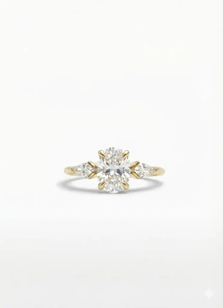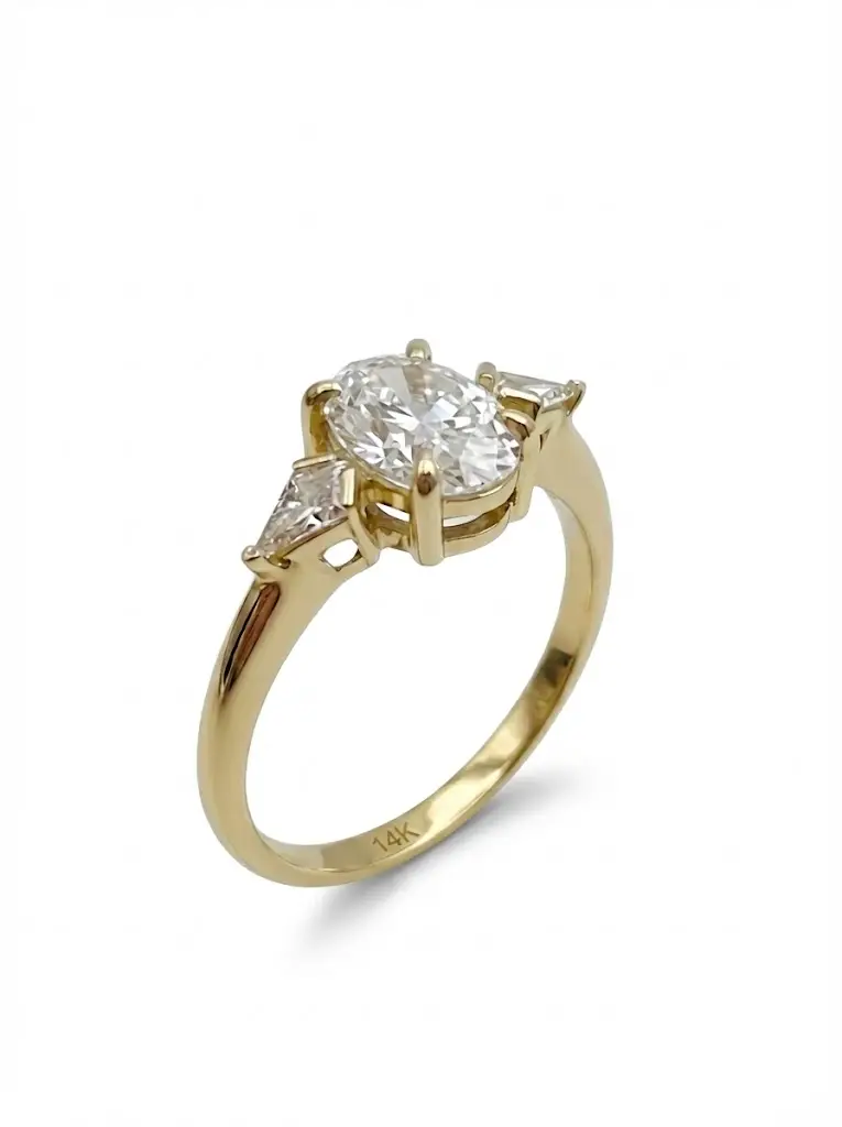 A special ring full of power, the Sasha model, set with an oval diamond and side-set diamonds, giving the ring a powerful appearance.